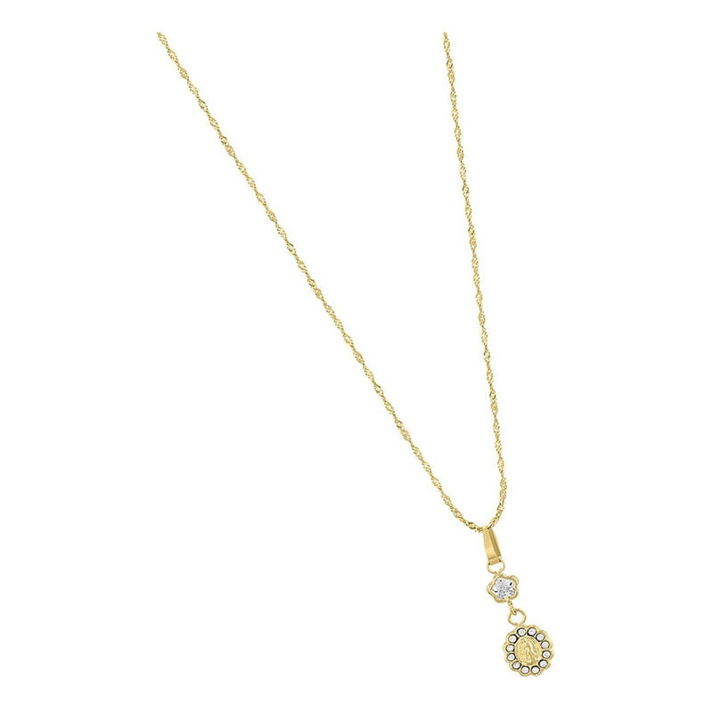 Kit Flor Guadalupe Elaborado En Oro De 10 K Con Zirconias + Obsequio + Envio