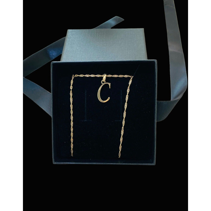 Juego Inicial Letra C Con Cadena 50 Cm Oro 14 K + Obsequio