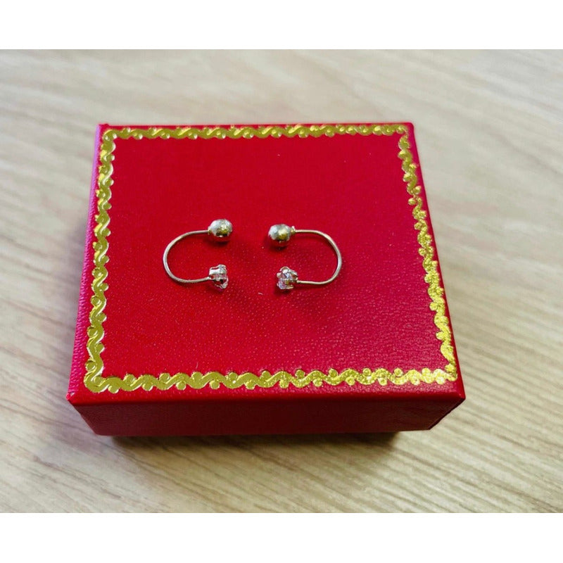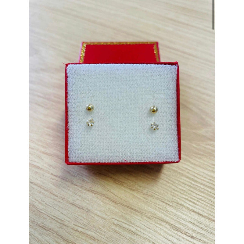 El primer par tiene Zirconias y el segundo par tiene Bolitas, y el tercer Par tiene de un lado bolita y del otro zirconias todos son elaborados en oro de 10 k