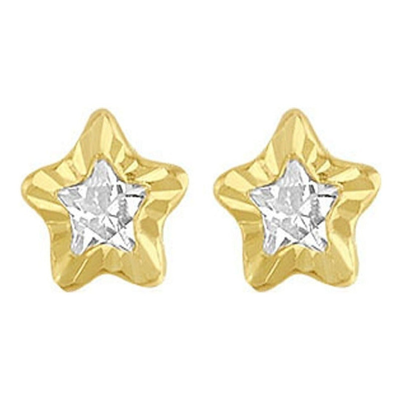 Broquel Estrella 4 Mm Diamante En Oro De 10 K + Obsequio