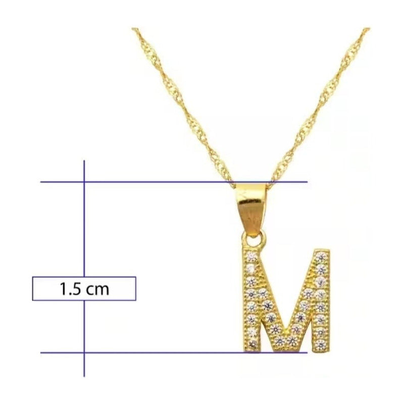 Inicial Letra M Con Zirconias Elaborada En Oro De 10 K + Obsequio + Envío Tiene 1 cm, Tu compra incluye: - Estuche de Regalo - Paño de Limpieza - Cadena Elaborada en Oro Laminado de Regalo - Envío Gratis