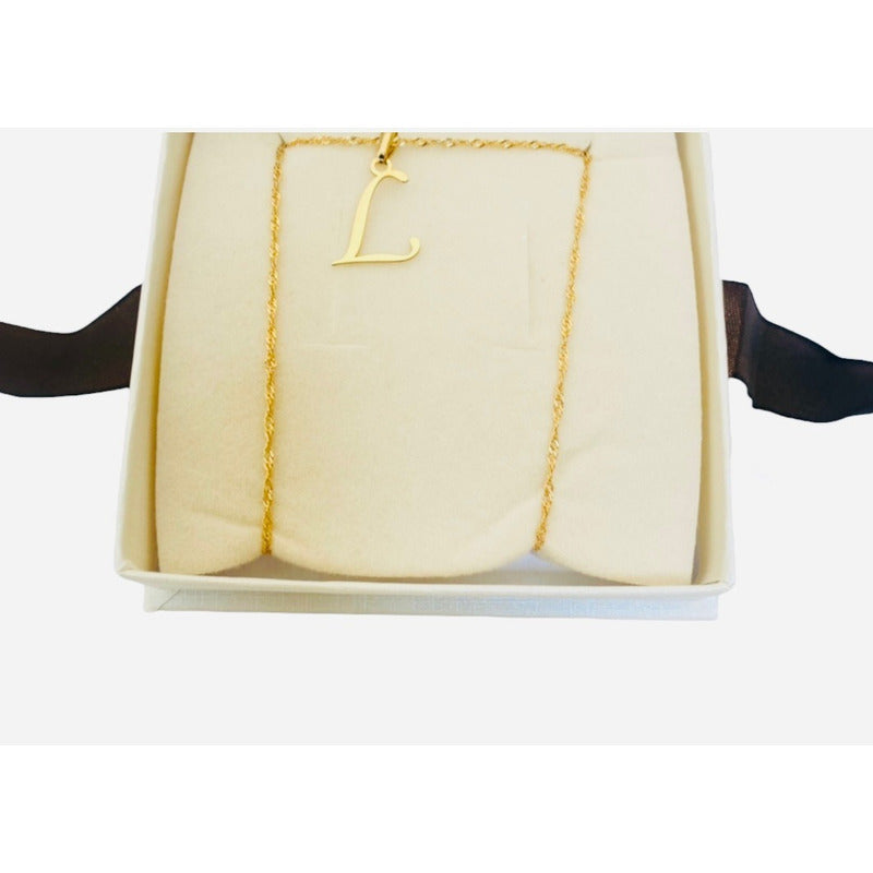 Juego Inicial Letra L Con Cadena 50 Cm Oro 14 K + Obsequio