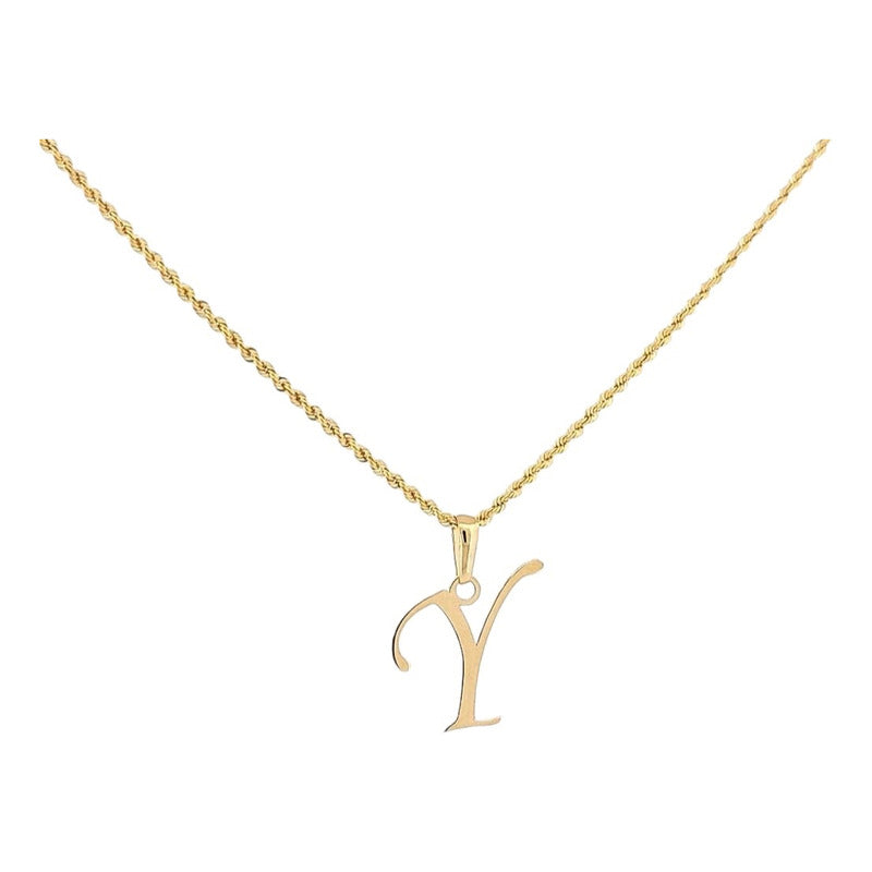Hermosa Gargantilla Inicial Letra Y Con Cadena Torsal de 1 mm por 45 cm en Oro 14 k Tu compra incluye: •Reloj de regalo •Envío a toda la República •Caja de regalo •Bolsa de boutique •Bolsa de terciopelo