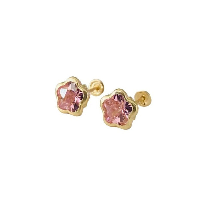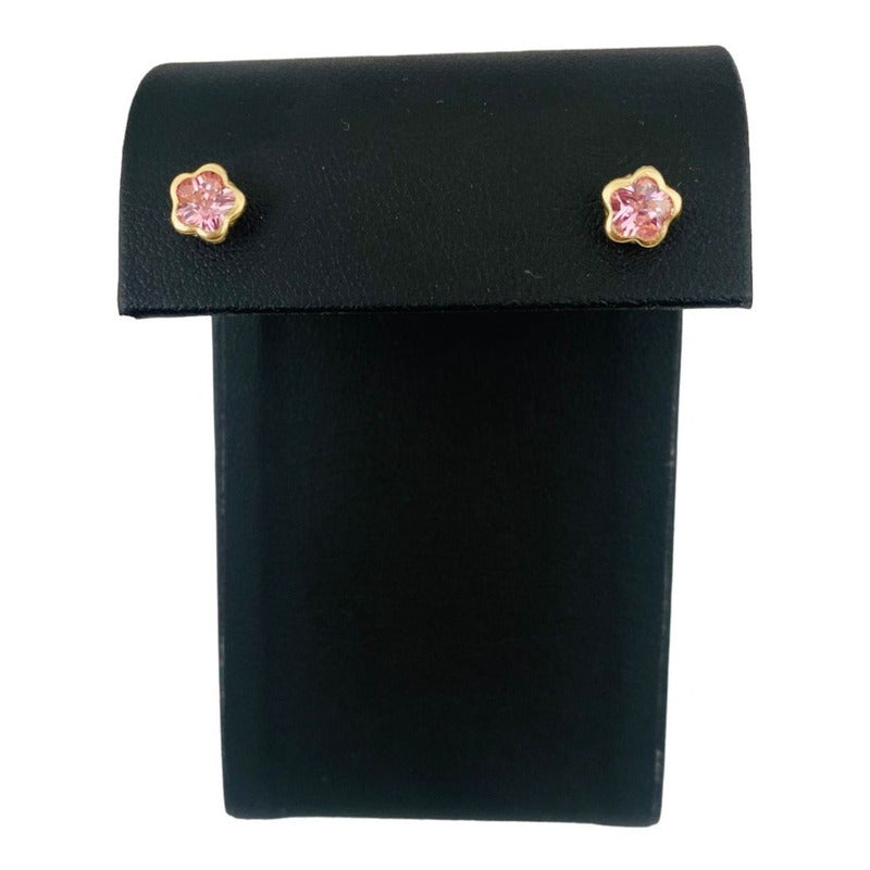 Bonitos Aretes De Flor Con Zirconia En Oro De 10k + Obsequio