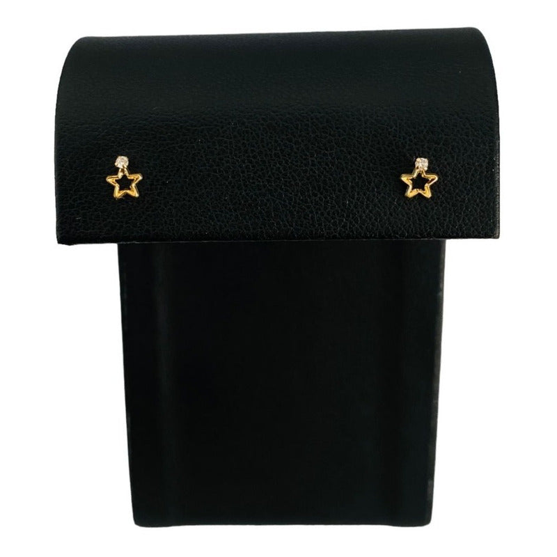 Broqueles De Estrella Con Zirconia En Oro De 14 Kilates