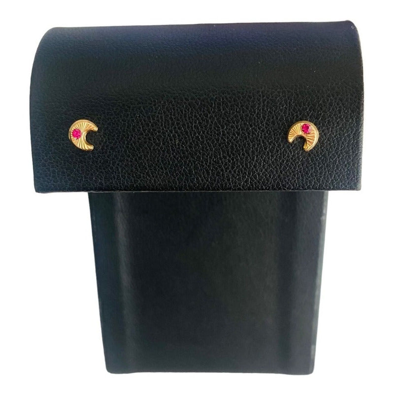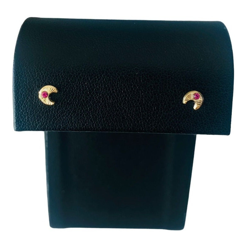 Broqueles De Luna Con Circonia Rosa En Oro De 14 Kilates