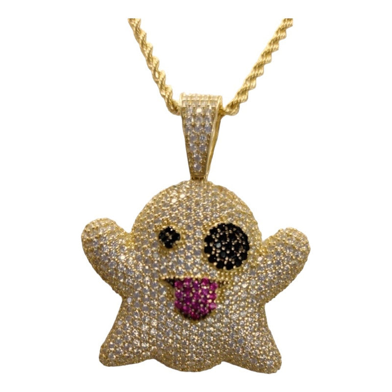 Dije Personalizado "Fantasmita" en oro de 10 kilates Incrustaciones de Zirconias Excelente calidad. Medidas: 3 cm largo X 3.5 cm de ancho. Tu compra incluye: - Estuche de regalo - Paño de limpieza - Bolsa de franela anti-polvo - Cadena elaborada en oro laminado de REGALO - Envío a cualquier parte de la República