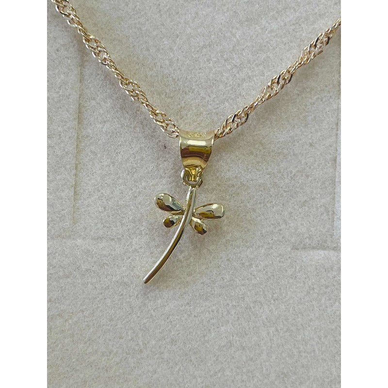 Kit Cadena Con Dije Mini Libelula Oro 10 K + Obsequio