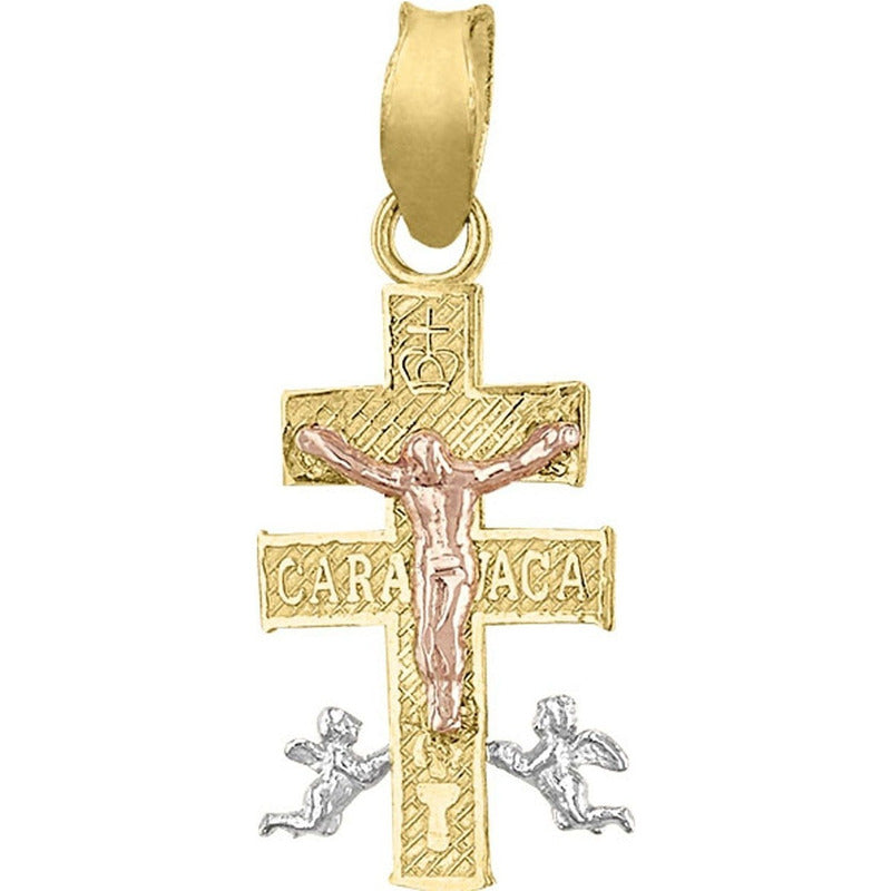 Kit Cadena Con Dije Mini Caravaca 3 Oros 10 K + Obsequio