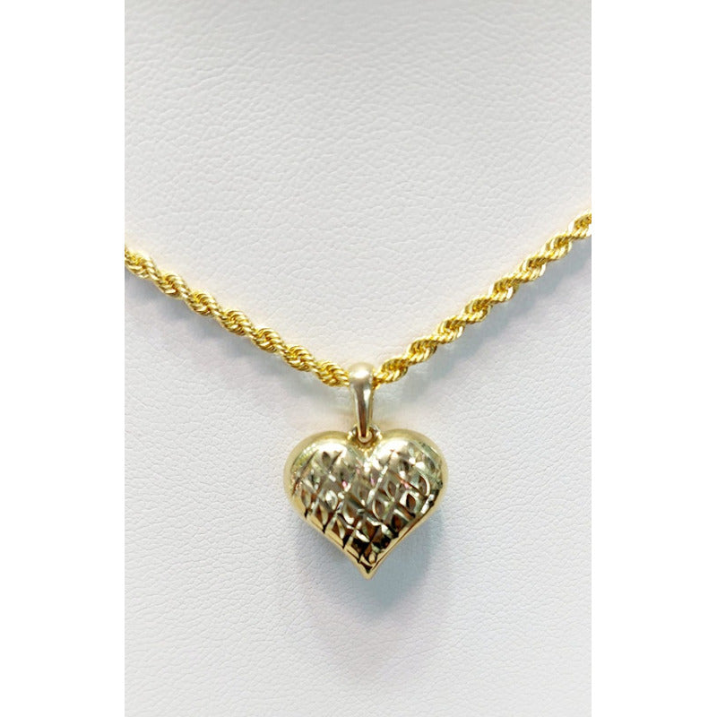Kit Cadena Con Dije Corazon Texturizado Oro 10 K. + Obsequio