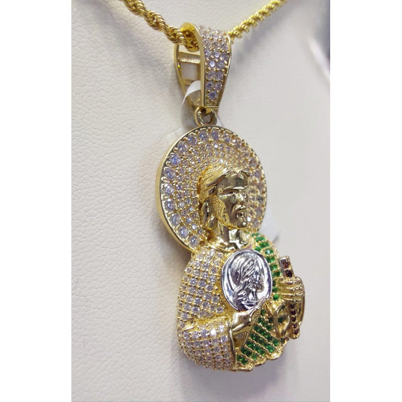 Cadena Tejido Torzal + Hermoso Dije Personalizado "San Judas Tadeo" en oro de 10 kilates Incrustaciones de Zirconias Excelente calidad. Medidas dije: 3.5 cm largo X 2.2 cm de ancho. Medidas cadena: 50 cm Tu compra incluye: - Estuche de regalo - Paño de limpieza - Bolsa de franela anti-polvo - Pulsera elaborada en oro laminado de REGALO - Envío a cualquier parte de la República