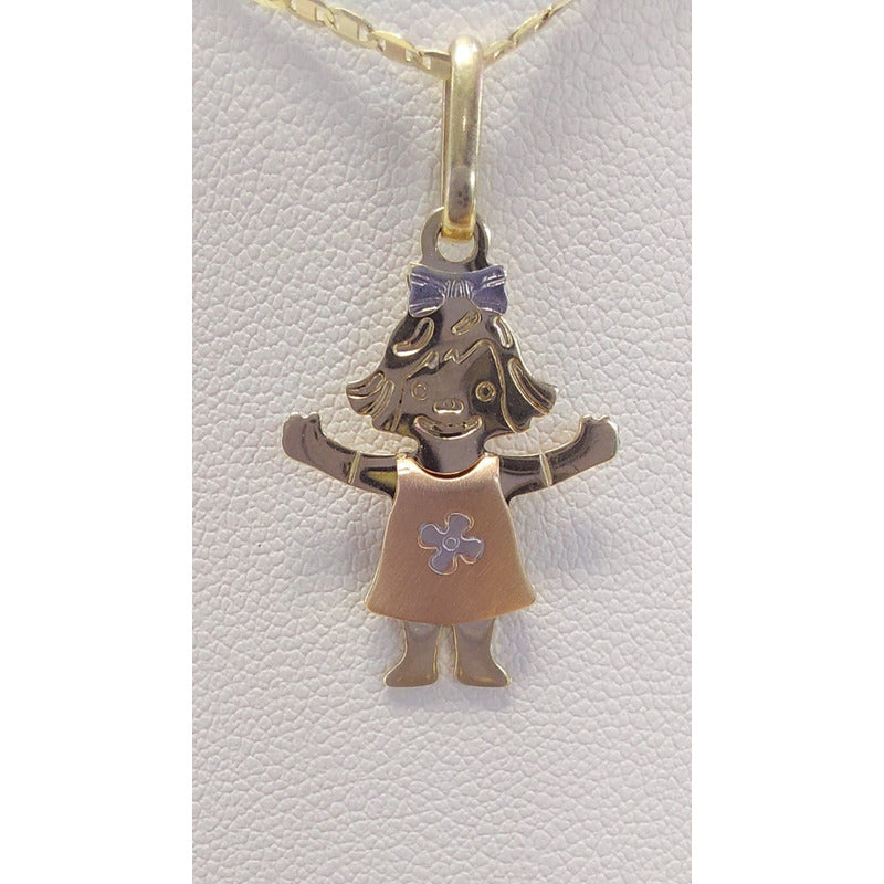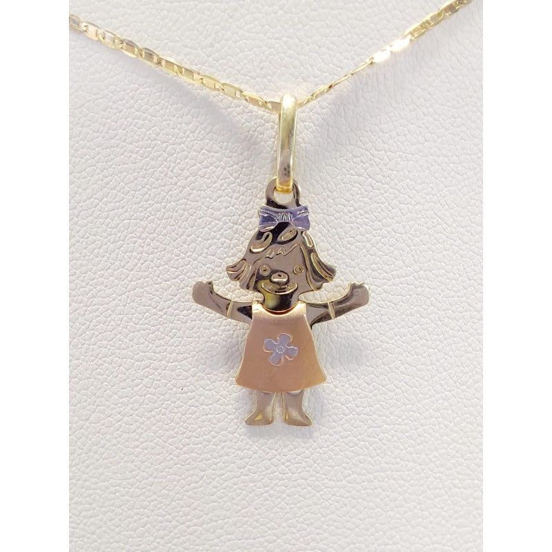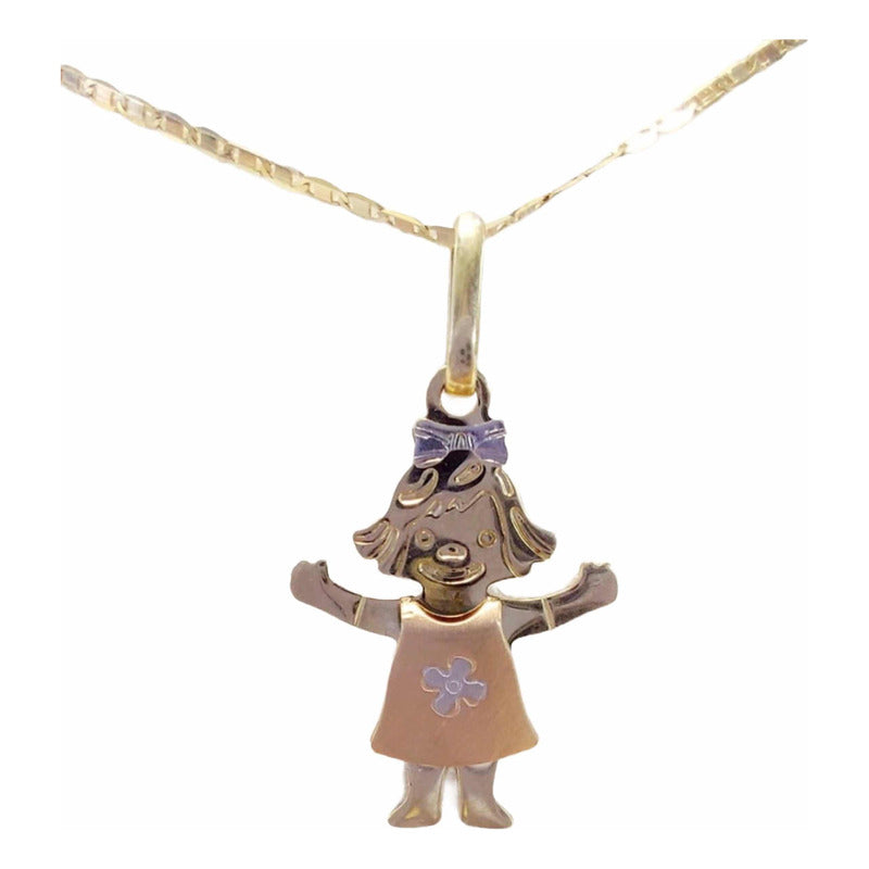 Cadena Tejido Torzal + Hermoso dije "Niña 3 oros" en oro de 10 kilates Incrustacion de Zirconia Excelente calidad. Medidas dije: 1.5 cm largo con asa X 0.7 cm de ancho. Medidas cadena: 45 cm Tu compra incluye: - Estuche de regalo - Paño de limpieza - Bolsa de franela anti-polvo - Pulsera elaborada en oro laminado de REGALO - Envío a cualquier parte de la República