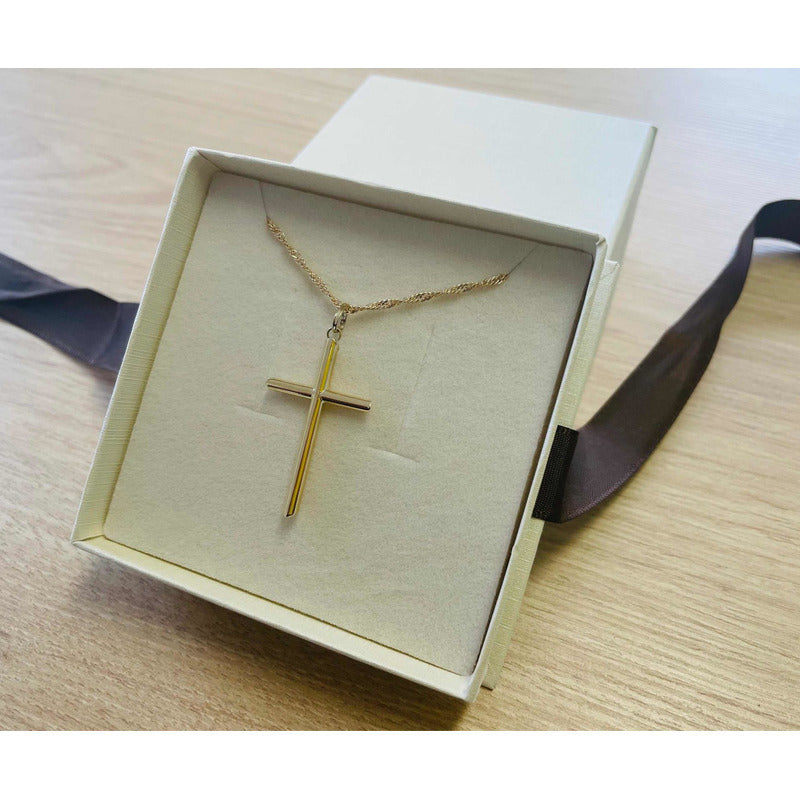Dije De Cruz Tubular 4 Cm Oro 10k + Obsequio