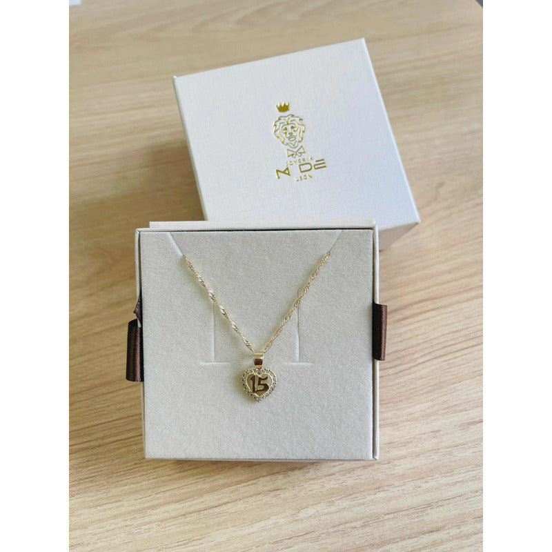 Kit Cadena Con Dije Corazón De Xv Años Oro 10 K + Obsequio