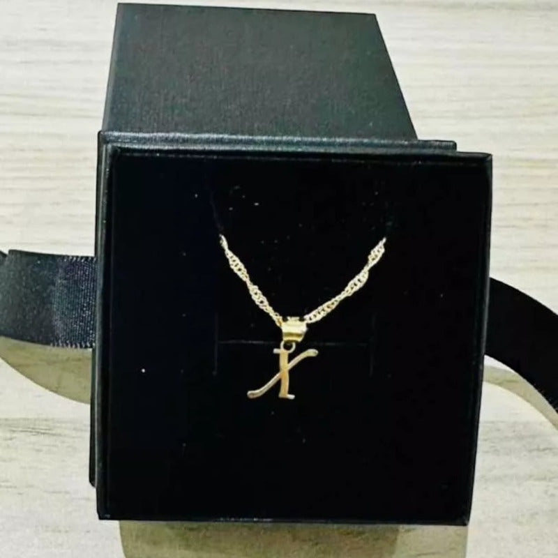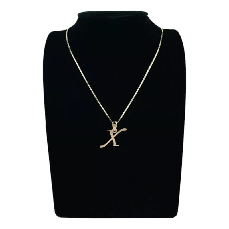 Juego Collar Letra X Lisa + Aretes Bola 10 K. + Regalo