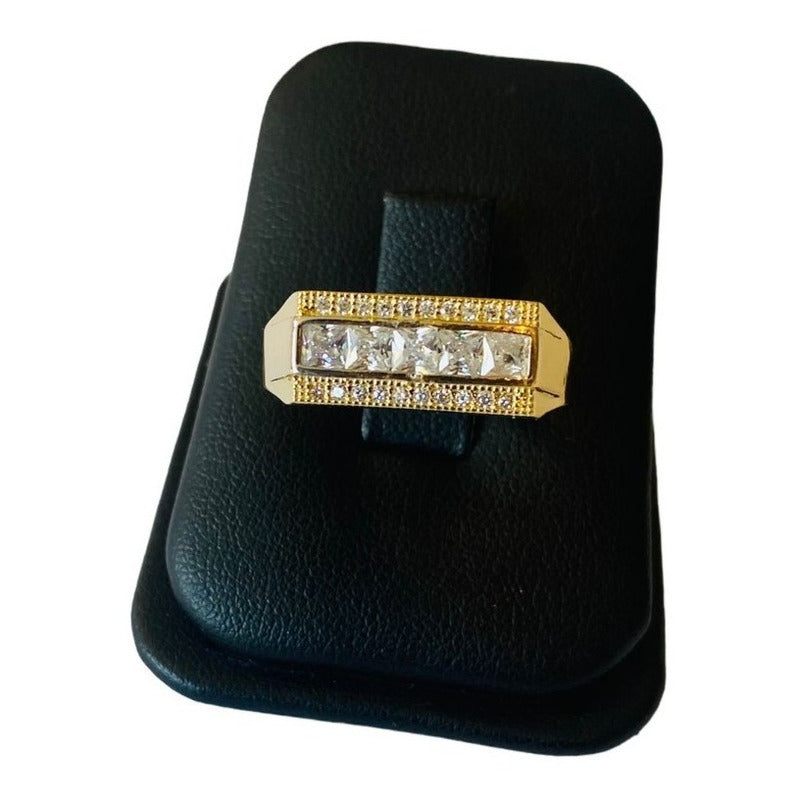 Elegante Anillo Caballero Oro 10 K Con Circonias + Obsequio