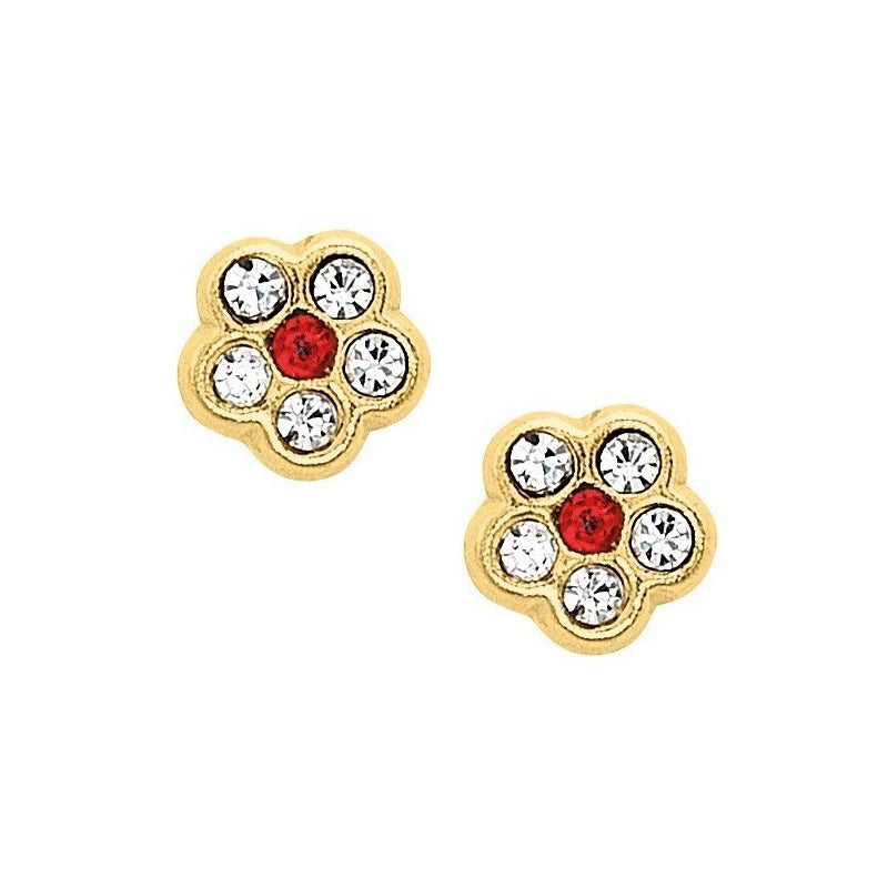Broqueles Flor Piedra Roja Para Bebé 1 Mm Oro De 10 K