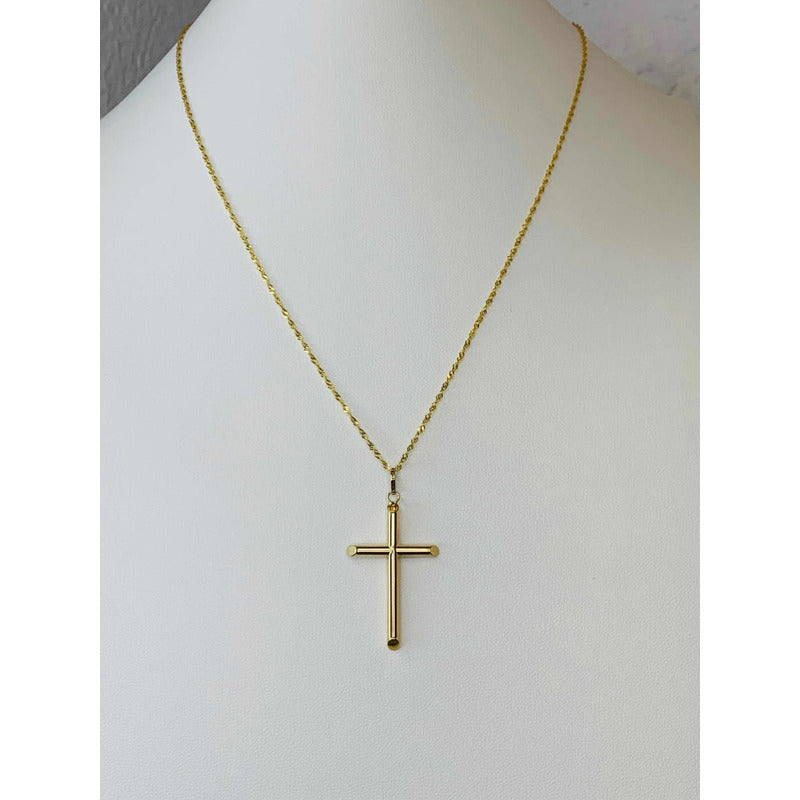Dije De Cruz Tubular 3 Cm Oro 10k + Obsequio