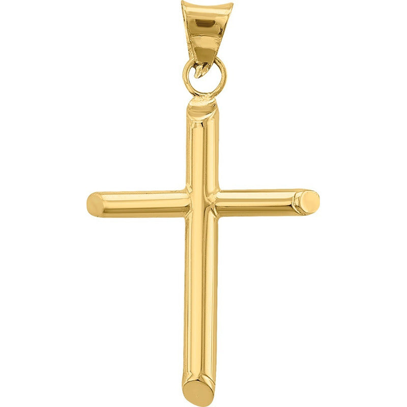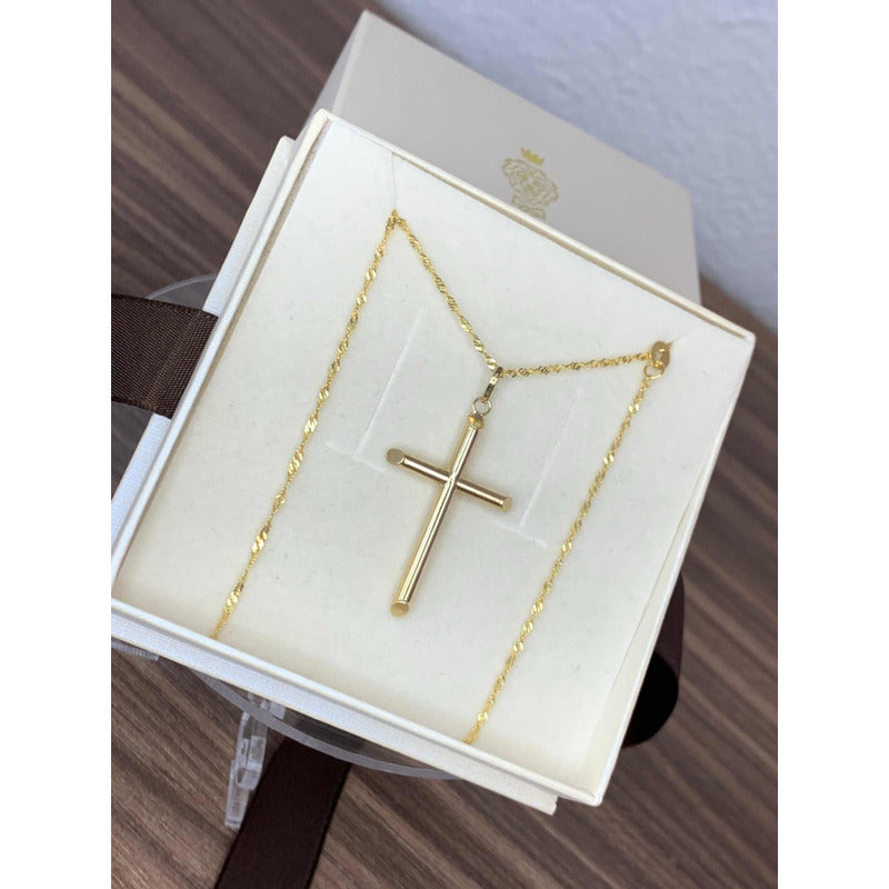 Dije De Cruz Tubular elaborada de Oro macizo de 10 k Tiene 3 cm de altura mas 0.7 cm de asa por 1.9 de ancho por un grosor de 2 mm. El asa puede ser de bandola o de aro. Tu compra incluye: - Estuche de regalo - Paño de limpieza - Bolsa de franela antipolvo - Cadena de Oro laminado de Regalo - Envío a cualquier parte de la República